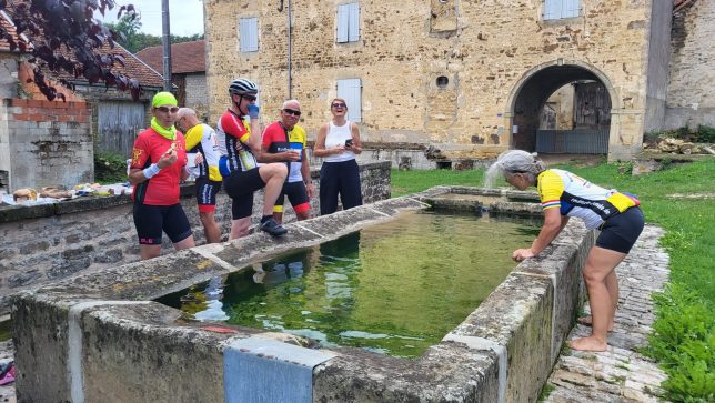 Nach der Querung des Rheins bei Basel wurde es dann ländlich. Und so sollte es für den Rest der Strecke auch bleiben. Dank der Streckenplanung von Heike Berthold mit komoot fuhren wir durch über Nebenstraßen durch viele kleine Orte mit viel Natur. In praktisch jedem Ort gab es einen großen Brunnen/Trog, welche wir oft für unsere Pausen nutzten.